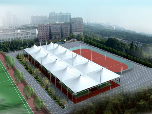 PTFE膜結(jié)構(gòu)羽毛球場(chǎng)優(yōu)勢(shì):PTFE膜結(jié)構(gòu)羽毛球場(chǎng)擁有良好的力學(xué)性能、出色的耐候性、自潔性、透光性、造型美觀、施工便捷等優(yōu)勢(shì)。PTFE膜材具有較高的抗拉強(qiáng)度、撕裂強(qiáng)度和抗疲勞性能,能夠承受風(fēng)雨、積雪等自然荷載,確保羽毛球場(chǎng)屋蓋在各種氣候條件下的安全性和穩(wěn)定性,可滿足不同規(guī)模和使用要求的羽毛球場(chǎng)建設(shè)。還具有良好的耐候性和耐化學(xué)腐蝕性,能抵御酸、堿、鹽等化學(xué)物質(zhì)的侵蝕,在紫外線長(zhǎng)期照射下,不易褪色和老化,可延長(zhǎng)羽毛球場(chǎng)的使用壽命。PTFE膜材表面光滑,不沾灰塵和污垢,雨水沖刷即可保持表面清潔,使羽毛球場(chǎng)外觀始終保持整潔美觀,減少了后期的清潔維護(hù)工作和成本。膜材具有良好的透光性,能夠讓陽(yáng)光透過(guò)屋頂灑進(jìn)場(chǎng)地內(nèi),營(yíng)造出明亮而溫暖的環(huán)境,白天無(wú)需開燈也能保證充足的照明,不僅節(jié)省能源,還能為運(yùn)動(dòng)員和觀眾提供舒適的視覺體驗(yàn)。PTFE膜結(jié)構(gòu)可以通過(guò)設(shè)計(jì)不同的形狀、曲線和色彩,創(chuàng)造出獨(dú)特而美觀的建筑造型,為羽毛球場(chǎng)增添現(xiàn)代感和藝術(shù)氛圍,使其成為城市景觀的一部分。膜材質(zhì)量輕,安裝過(guò)程更加便捷高效,大大縮短了施工周期。同時(shí),膜結(jié)構(gòu)的裁剪和拼接可以在工廠預(yù)先完成,減少了現(xiàn)場(chǎng)施工的工作量和難度,提高了施工效率。