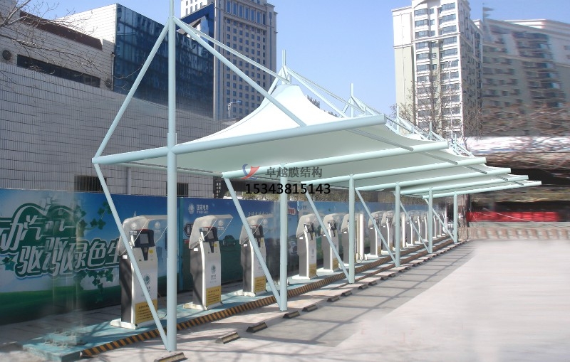 3、膜結(jié)構(gòu)充電站具有結(jié)構(gòu)牢固、外觀新穎,經(jīng)濟適用,適用壽命長,節(jié)能環(huán)保等優(yōu)點。深受廣大用戶的一致好評,卓越所有工程全部都是通過專業(yè)3D3S膜結(jié)構(gòu)軟件計算通過,結(jié)構(gòu)安全,質(zhì)量可靠。