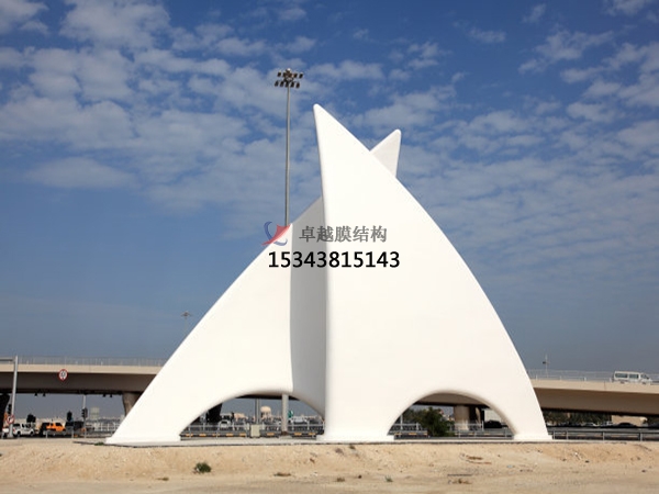 張拉膜結(jié)構(gòu)(Tesioned Membrane Structure) ,是依靠膜自身的張拉應(yīng)力與支撐桿和拉索共同構(gòu)成機(jī)構(gòu)體系。在陽(yáng)光的照射下,由膜覆蓋的建筑物內(nèi)部充滿自然漫射光,無(wú)強(qiáng)反差的著光面與陰影的區(qū)分,室內(nèi)的空間視覺(jué)環(huán)境開闊和諧。夜晚,建筑物內(nèi)的燈光透過(guò)屋蓋的膜照亮夜空,建筑物的體型顯現(xiàn)出夢(mèng)幻般的效果。張拉膜結(jié)構(gòu)特別適合用來(lái)建造城市標(biāo)志性建筑的屋頂,如體育與娛樂(lè)性場(chǎng)館,需有廣告效應(yīng)的商場(chǎng)、餐廳等。城市的交通樞紐是城市命脈的關(guān)鍵性建筑,使用功能要求建筑物各組成單元的標(biāo)志明確。因而近來(lái)年,這類建筑越來(lái)越多采用膜結(jié)構(gòu)。建筑膜材料的使用壽命為 25 年以上。在使用期間,在雪或風(fēng)荷載作用下均能保持材料的力學(xué)形態(tài)穩(wěn)定不變。建成于 1973 年的美國(guó)加州 La Verne 大學(xué)的學(xué)生活動(dòng)中心是已有 23 年歷史的張拉膜結(jié)構(gòu)建筑.跟蹤測(cè)試與材料的加載與加速氣候變化的試驗(yàn),證明它的膜材料的力學(xué)性能與化學(xué)穩(wěn)定性指標(biāo)下降了 20 %至 30 %,但仍可正常使用。膜的表層光滑,具有彈性,大氣中的灰塵、化學(xué)物質(zhì)的微粒極難附著與滲透,經(jīng)雨水的沖刷建筑膜可恢復(fù)其原有的清潔面層與透光性。