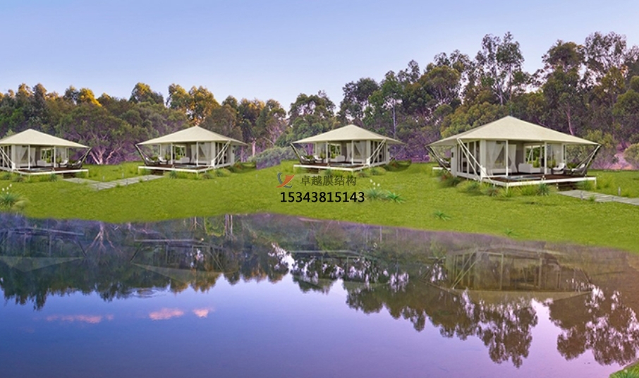 膜結(jié)構(gòu)帳篷酒店膜材是一種無(wú)毒的高分子材料。它具有無(wú)味的特點(diǎn),安裝后沒(méi)有一絲味道。另外,它擁有抗紫外線(xiàn)和反射光線(xiàn)極強(qiáng)的特點(diǎn),而且其抗撕裂的性能強(qiáng),還有B1/M2級(jí)別的阻燃性能,并且使用壽命極強(qiáng),一般壽命都在20年以上。
