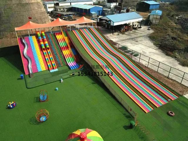 滑梯:滑梯的彩色膜結(jié)構(gòu)可以提供遮陽和避雨的功能,同時(shí)也可以增加視覺效果,讓滑梯更加吸引人。