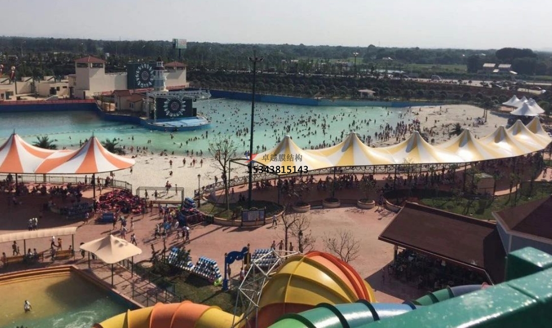 景觀膜結(jié)構(gòu):景觀膜結(jié)構(gòu)是水上樂園中的一道亮麗風景線。它們或懸掛在空中,或依附于建筑物表面,以獨特的造型和色彩為游客帶來視覺上的享受。這些景觀膜結(jié)構(gòu)不僅美化了水上樂園的環(huán)境,還提升了游客的游玩體驗。
