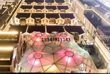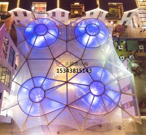 工程特點(diǎn):該項目是國內(nèi)好的單層ETFE加雙層氣枕膜完美嵌合的景觀雨棚建筑,利用ETFE膜材的高透光高自潔性以及雙層氣枕的隔熱能力,雨棚在具有遮陽擋雨功能的同時還可以實(shí)現(xiàn)自然采光,行人沒有傳統(tǒng)密封建筑的束縛感;另一方面,ETFE膜結(jié)構(gòu)建筑是當(dāng)代更新的建筑應(yīng)用形式之一,工程高度定制,顏值高,具有好的性,天生自帶聚集人氣光環(huán)。