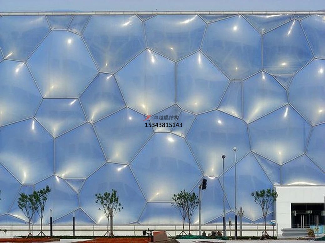 骨架膜結(jié)構(gòu)的顯著特點(diǎn)在于:膜不是維持結(jié)構(gòu)體系存在的必要結(jié)構(gòu)單元,但膜又不僅僅是單純地用來(lái)覆蓋屋面體系,而是充分發(fā)揮了其建筑采光功能、高強(qiáng)度受力特性。因屋頂造型比較單純,開(kāi)口部不易受限制,且經(jīng)濟(jì)效益高等特點(diǎn),廣泛適用于任何大,小規(guī)模的空間。