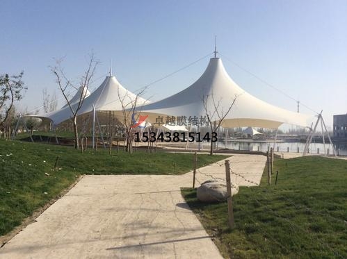 張拉膜景觀是一種建筑與結(jié)構(gòu)完美結(jié)合的結(jié)構(gòu)體系;它是用高強(qiáng)度柔性薄膜材料與支撐體系相結(jié)合形成具有一定剛度的穩(wěn)定曲面,能承受一定外荷載的空間結(jié)構(gòu)形式;這種結(jié)構(gòu)形式特別適用于大型體育場(chǎng)館、人口廊道、小品、公眾休閑娛樂(lè)廣場(chǎng)、展覽會(huì)場(chǎng)、購(gòu)物中心等領(lǐng)域。