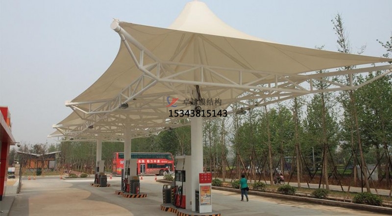 工程完工后,監(jiān)理應(yīng)全數(shù)檢查膜面的防水與排水特別在天溝、膜面與膜結(jié)構(gòu)加油站的結(jié)合部位較易發(fā)生漏水的地方,如檢查發(fā)現(xiàn)泄漏點(diǎn),配合施工單位對(duì)泄漏部位提出整改方案。一、膜結(jié)構(gòu)加油站發(fā)黃的原因。膜結(jié)構(gòu)加油站之所以會(huì)發(fā)黃,是因?yàn)槭褂玫哪げ氖荘VC膜材,這種膜材在加熱變形后就會(huì)黃變,主要原因如下:PVC樹(shù)脂的光穩(wěn)定性差,通過(guò)熱和光在支鏈上發(fā)生脫HCI反應(yīng)、多烯結(jié)構(gòu)分子,主鏈上共軛雙鍵數(shù)少時(shí)發(fā)生微量色差,氯化氫很好的先與周?chē)鷿撛诘乃峄钚晕镔|(zhì)反應(yīng),共軛雙鍵成為PVC分子鏈內(nèi)的新活性位置,通過(guò)光大大誘發(fā)。pvc樹(shù)脂中存在一些低分子量組分,可降低聚合物的熱穩(wěn)定性,其分解機(jī)理包括自由基機(jī)理、離子機(jī)理和單分子機(jī)理。聚合物中如存在某種雜質(zhì),例如在聚合過(guò)程中加人的引發(fā)劑、催化劑、酸、堿等去除不盡,或在儲(chǔ)運(yùn)過(guò)程中吸收水分,都會(huì)降低聚合物的穩(wěn)定性。由于這些物質(zhì)可引起分子離子降解反應(yīng),cpe含有更多的低分子物質(zhì),如cl2、hcl等。