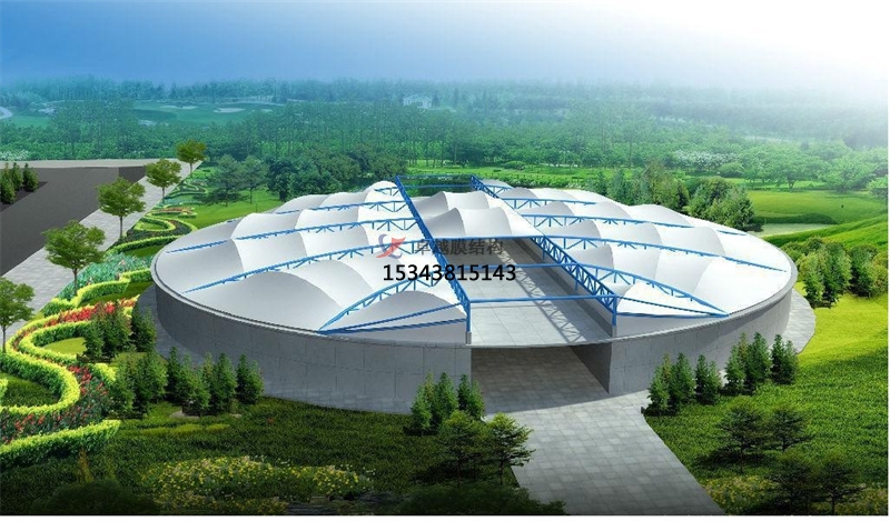 3、跨度大:由于膜材自重輕,而抗拉強(qiáng)度很大,膜結(jié)構(gòu)可以從根本上克服傳統(tǒng)結(jié)構(gòu)在大跨度(中間無支撐)建筑上實(shí)現(xiàn)所遇到的困難,適于大跨度的池體;