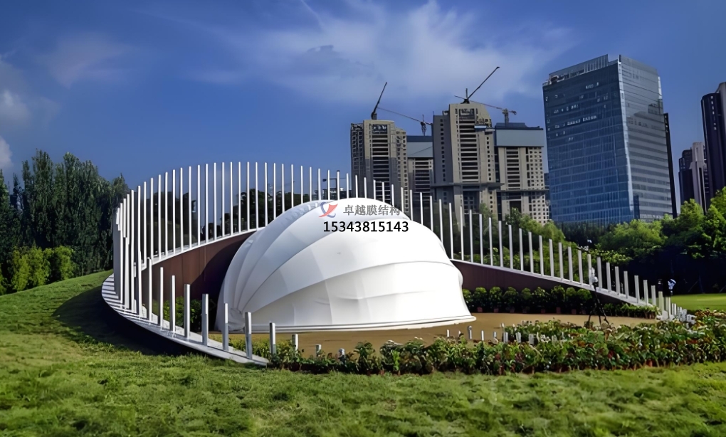 隨著科技的不斷進(jìn)步與藝術(shù)需求的日益提升,舞臺膜結(jié)構(gòu)將朝著更加智能化、環(huán)保化和多元化的方向發(fā)展。智能化方面,膜結(jié)構(gòu)舞臺可能會配備智能調(diào)光系統(tǒng),根據(jù)演出進(jìn)程自動調(diào)節(jié)燈光效果;或是安裝環(huán)境監(jiān)測設(shè)備,實(shí)時調(diào)整膜材的透光率和通風(fēng)性能,以適應(yīng)不同的演出環(huán)境。環(huán)保領(lǐng)域,研發(fā)更環(huán)保、可降解的新型膜材將成為趨勢,進(jìn)一步降低舞臺搭建對環(huán)境的影響。在多元化上,膜結(jié)構(gòu)舞臺將與多媒體技術(shù)深度融合,創(chuàng)造出更加豐富、立體的舞臺視覺體驗(yàn),為觀眾帶來前所未有的感官沖擊。