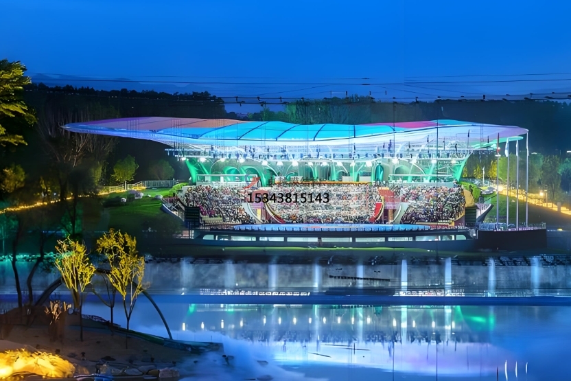 傳統(tǒng)舞臺多以方正、規(guī)則的造型示人,而膜結(jié)構(gòu)舞臺則打破了這種局限。通過巧妙的設(shè)計與張拉技術(shù),膜結(jié)構(gòu)能夠塑造出如波浪般起伏、似云朵般飄逸,甚至是極具未來感的不規(guī)則造型。這些獨(dú)特的形態(tài)可以與演出主題緊密契合,無論是浪漫的音樂劇、激情的搖滾演唱會,還是充滿奇幻色彩的兒童劇,膜結(jié)構(gòu)舞臺都能營造出與之相匹配的夢幻氛圍。例如,在一場以海洋為主題的演出中,膜結(jié)構(gòu)舞臺可以設(shè)計成海浪翻涌的形狀,觀眾仿佛置身于波濤洶涌的海邊,沉浸式感受演出魅力。