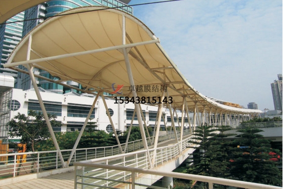 膜結(jié)構(gòu)遮陽棚造型設(shè)計:其造型設(shè)計主要從整體風(fēng)格和形狀設(shè)計兩方面出發(fā)。其中整體風(fēng)格是指根據(jù)使用場所和客戶喜好確定遮陽棚的整體風(fēng)格,如簡約現(xiàn)代、歐式古典、自然生態(tài)等??梢酝ㄟ^調(diào)整遮陽棚的形狀、線條、色彩來實現(xiàn)不同的風(fēng)格效果。形狀設(shè)計,膜結(jié)構(gòu)遮陽棚的形狀豐富多樣,常見的有平頂式、坡頂式、拱形式、傘形式等。還可以根據(jù)場地的特殊要求和創(chuàng)意設(shè)計出獨特的形狀,如仿生形、自由曲線形等,以增加遮陽棚的美觀性和獨特性。