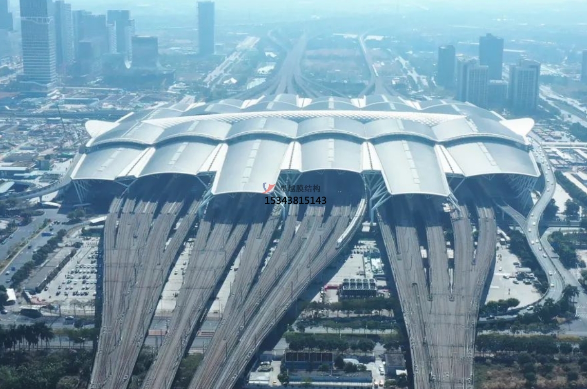 結(jié)構(gòu)輕盈:膜材料自重輕,配合高強(qiáng)度的輔助結(jié)構(gòu),如鋼架、鋼索等,能夠輕松覆蓋大跨度空間,滿足高鐵站對(duì)空間的需求。