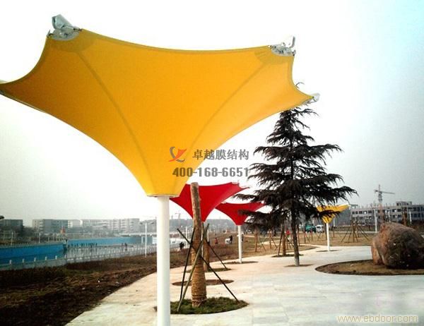 6、這是我司十堰及周邊地區(qū)完工的膜結(jié)構(gòu)景觀工程案例,膜結(jié)構(gòu)景觀具有外觀新穎,經(jīng)濟適用,適用壽命長,節(jié)能透光等優(yōu)點。 其張力結(jié)構(gòu)自重小,其主要是依靠預(yù)應(yīng)力而非材料來保持形態(tài)結(jié)構(gòu)的穩(wěn)定性。所以比傳統(tǒng)的景觀設(shè)施重量輕得多,但卻具有良好的穩(wěn)定性深受廣大用戶的好評,我司所有工程全部通過專業(yè)膜結(jié)構(gòu)軟件計算通過,結(jié)構(gòu)安全,質(zhì)量可靠,歡迎來電訂購,小編期待您的咨詢,聯(lián)系電話:13101719686。