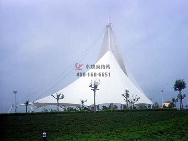 2、景觀膜結(jié)構(gòu)是目前發(fā)展很快的一種新型空間結(jié)構(gòu),是一種效率極高的張力集成體系,可以充分發(fā)揮鋼索的強(qiáng)度與張拉整體結(jié)構(gòu)的空間作用。它通過鋼骨架、鋼索與膜材共同受力形式穩(wěn)定曲面來覆蓋建筑空間,具有高度的形體可塑性和結(jié)構(gòu)靈活性,即通過對膜材內(nèi)部施加一定的預(yù)張力,使其具備了抵抗外荷載能力,從而充當(dāng)結(jié)構(gòu)材料的一種結(jié)構(gòu)體系。我公司先后在六安地區(qū)承接了中央森林公園景觀、皋城中心廣場景觀、六安萬達(dá)廣場景觀小品的設(shè)計(jì)施工,簡介如下: