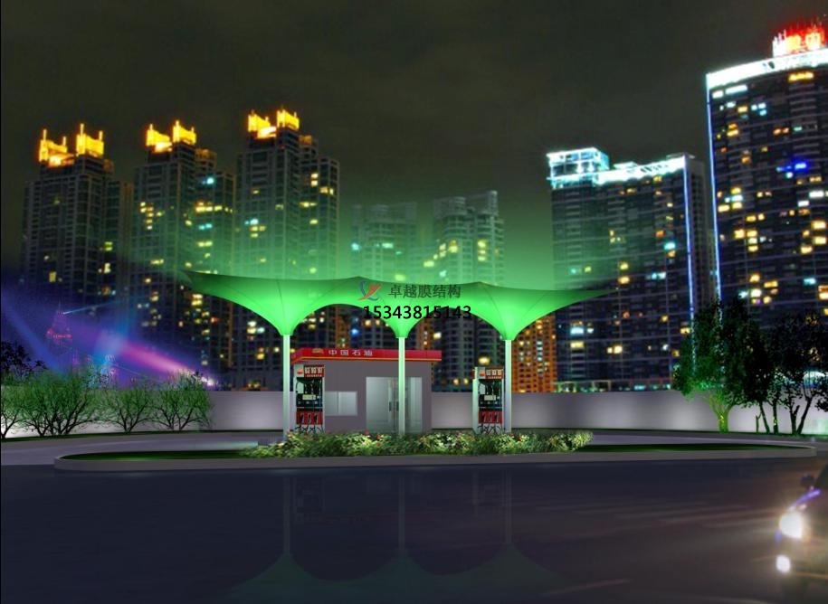 3、中國(guó)石化加油站(賽魚(yú)站)張拉膜雨棚/頂蓋