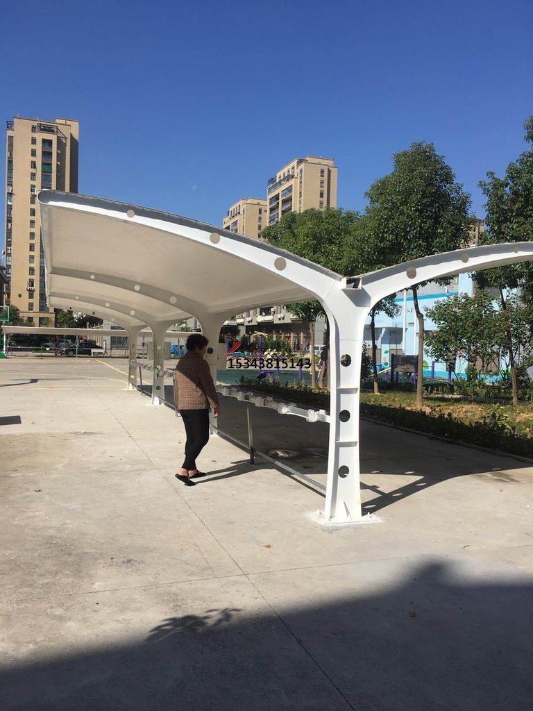 3、膜結(jié)構(gòu)充電站頂部封板采用茶色(顏色可挑選)陽光板封頂,與車棚整體骨架用壓條鉚接固定,耐酸堿腐蝕,有足夠強度對棚內(nèi)車輛起到保護(hù)作用。