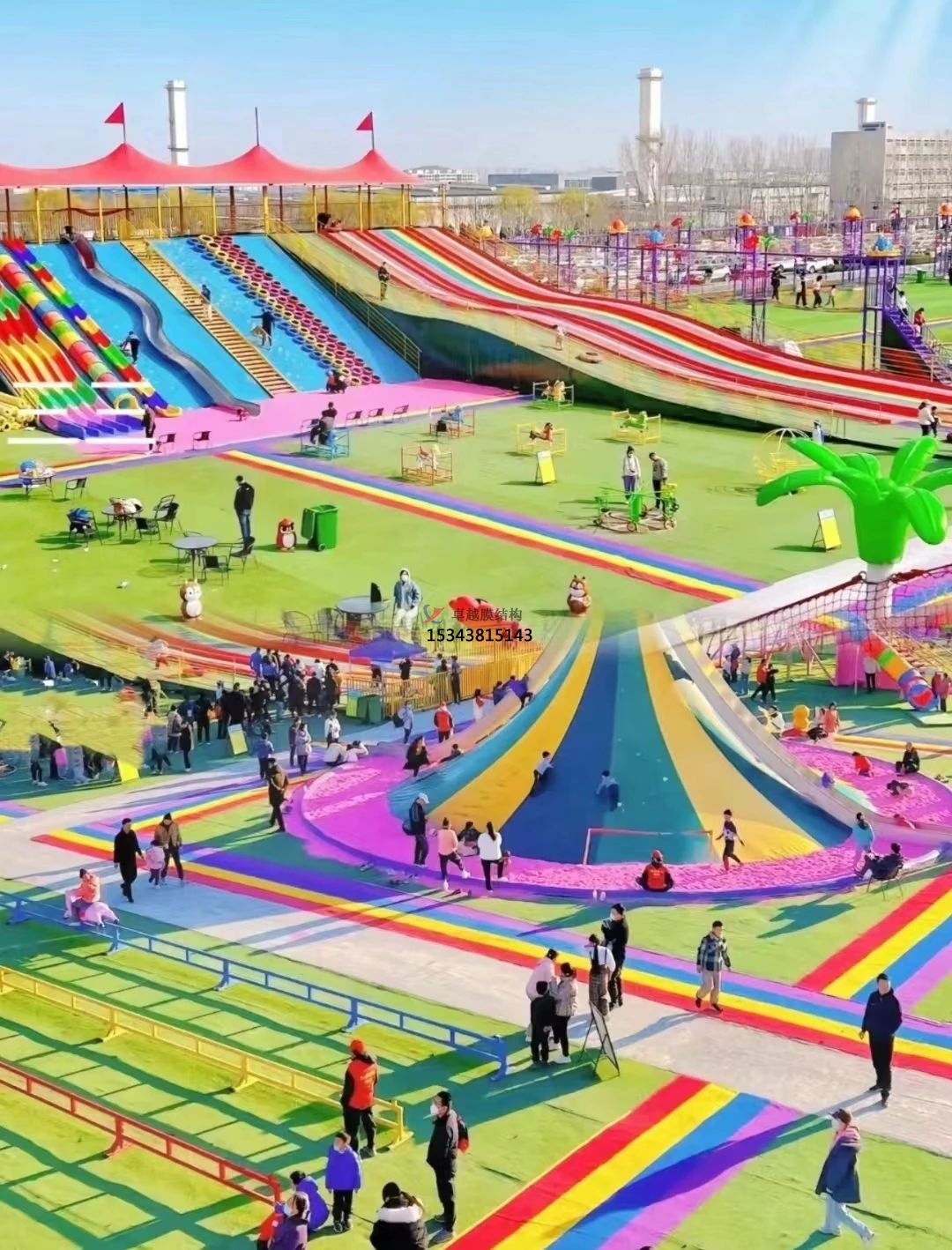 該項目的建設內(nèi)容包括彩虹滑道、遮陽棚、滑道安全設施等。彩虹滑道是該項目的一大亮點,全長約100米,寬約2米,坡度約為30度,可容納多人在滑道上同時滑行,為游客帶來刺激、愉悅的體驗。遮陽棚則為游客提供了遮陽、避雨的空間,保證了游客的舒適度和安全性。