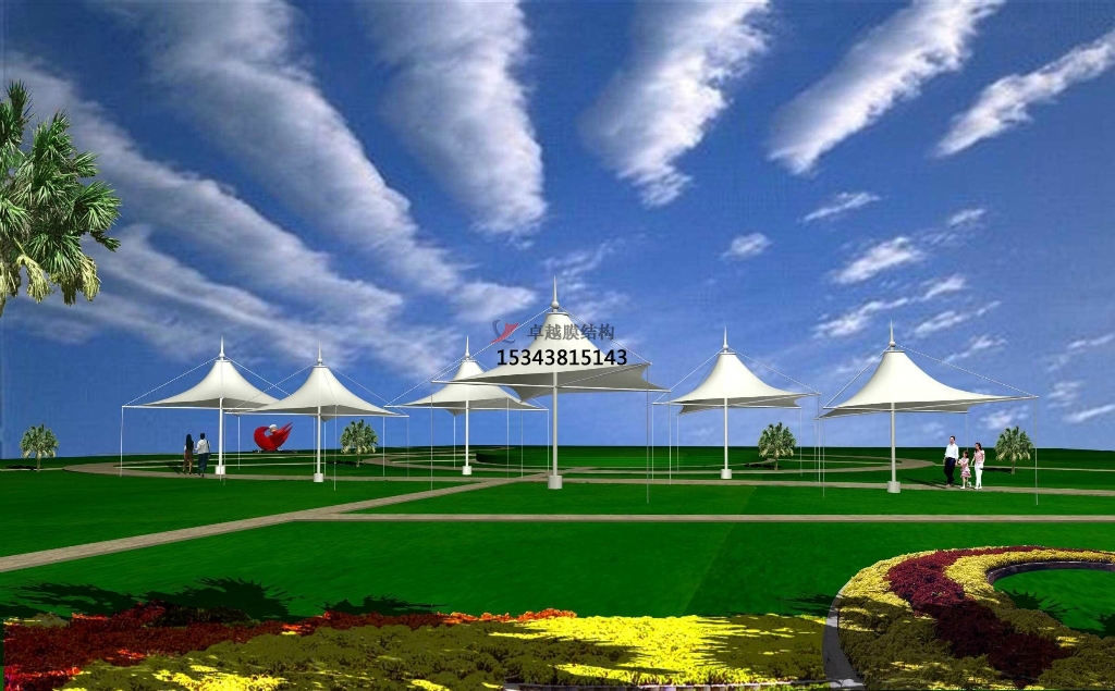 5、每年雨季和冬季來臨前,應(yīng)對園林景觀膜結(jié)構(gòu)的膜面進行檢查和清理,保持膜面排水系統(tǒng)暢通;在積雪量較大的地區(qū),應(yīng)采取必要的融雪和排雪應(yīng)急措施。由于膜材料在荷載作用下的變形,在膜表面坡度較小的地方可能會出現(xiàn)積水。對張拉膜結(jié)構(gòu)進行監(jiān)測,避免暴雨、大雪、融雪后積水。