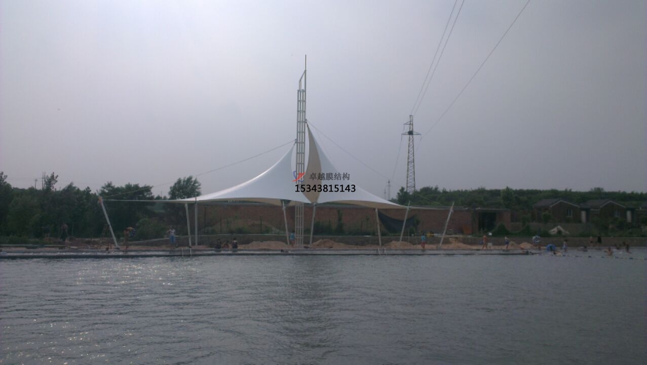 2.幾種膜結(jié)構(gòu) 與上述結(jié)構(gòu)膜結(jié)合的結(jié)構(gòu)大約有下述幾類(lèi): 1)純鋼拱形結(jié)構(gòu) 采用傳統(tǒng)的梁柱系統(tǒng),屋頂為圓拱式,柱梁間距一般為8m左右。 2)混凝土結(jié)構(gòu)主體加鋼拱 以上兩種更簡(jiǎn)單的膜結(jié)構(gòu),依平面的形狀,如方形、菱形等,可有許多變化,拱的間距依使用的膜材強(qiáng)度、設(shè)計(jì)荷載、風(fēng)力等確定。 3)混凝土主體結(jié)構(gòu)加鋼索 脊素為上彎,位于膜布下面,谷索為下彎,位于膜上面。兩種鋼索的彎向相反張拉后造成相反方向的垂直力,使膜市受到垂直方向的張力,膜布中水平方向的張力直接張拉形成。 4)混凝土主體結(jié)構(gòu)加鋼柱 5)張拉式帳篷膜結(jié)構(gòu) 6)大型(跨度在200m以上)氣撐式膜結(jié)構(gòu) 用扁鋼作的鋼索加上膜布,可以做成大跨度的巨型屋頂。