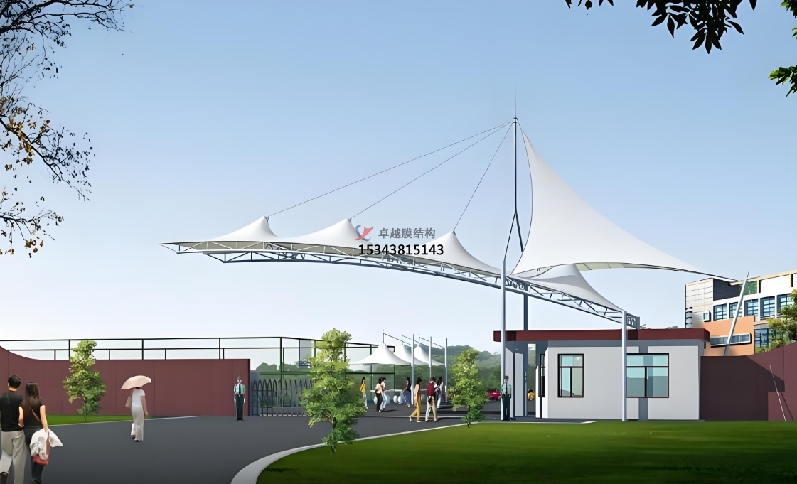 4. 結(jié)構(gòu)穩(wěn)定與承載力強:膜結(jié)構(gòu)設(shè)計堅固,能夠承受較大的負(fù)荷,確保了進(jìn)出口的安全性和可靠性。