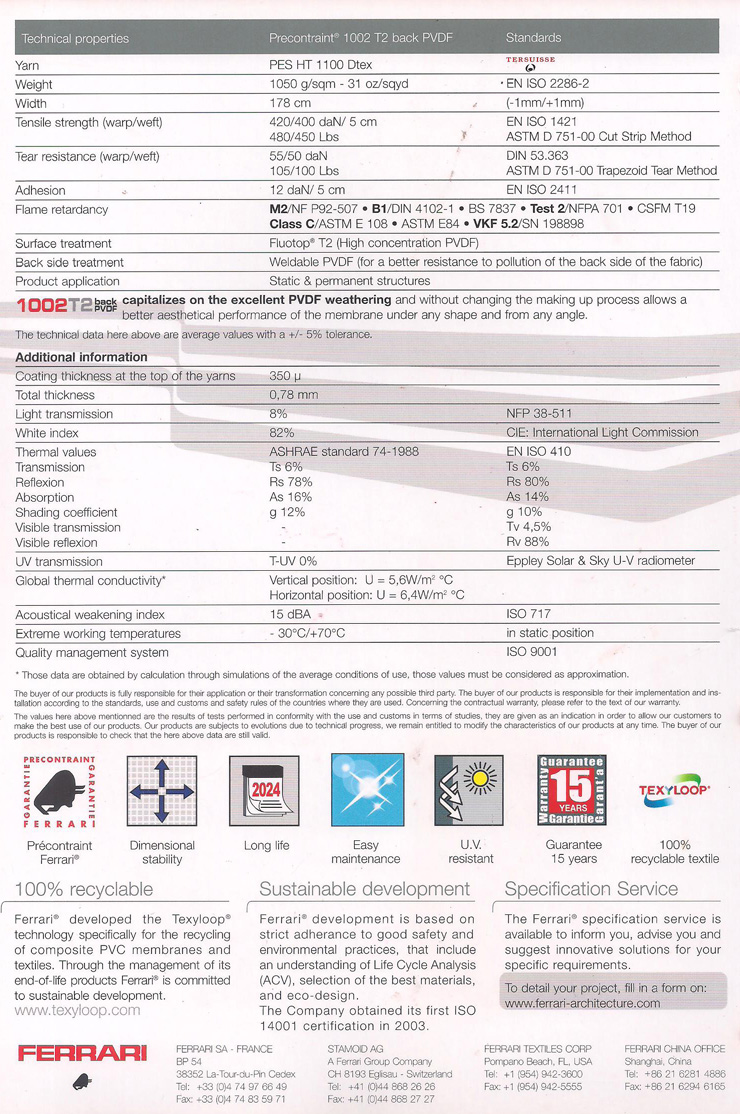 法拉利膜材料1002T2技術(shù)參數(shù):