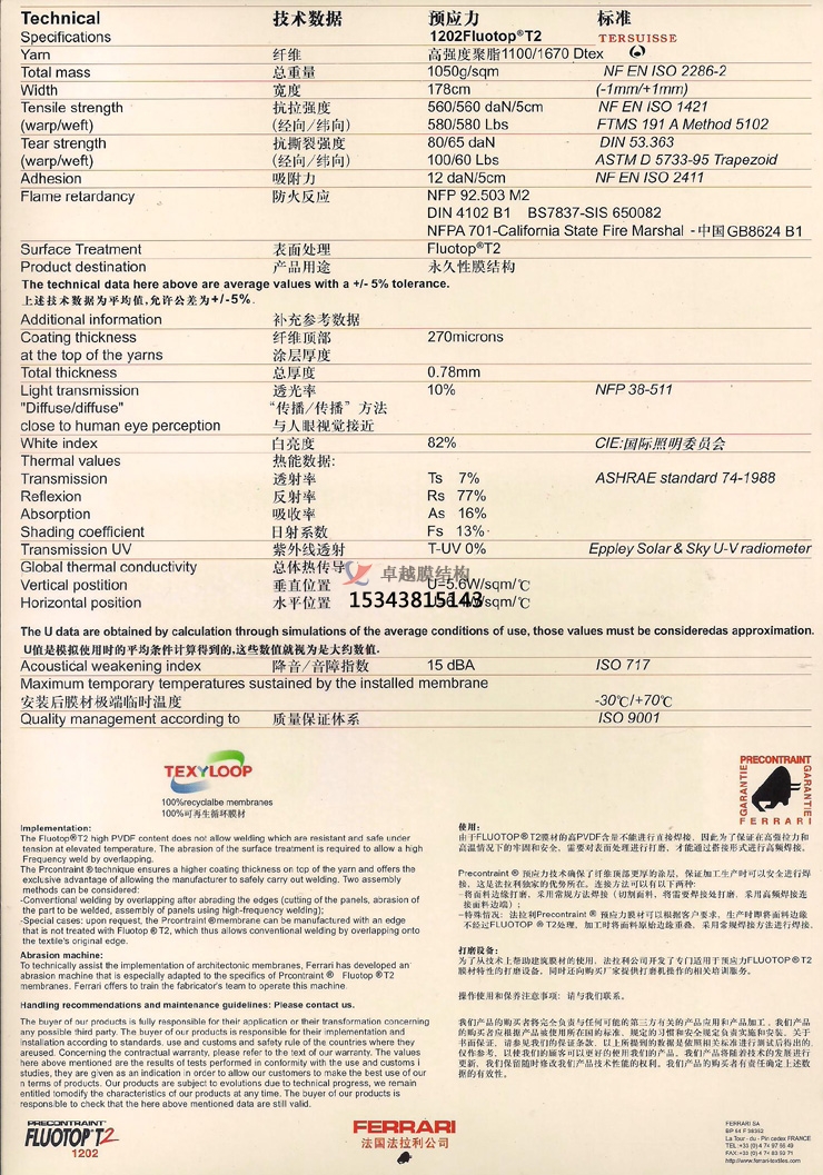 法拉利膜材料1202T2技術(shù)參數(shù):