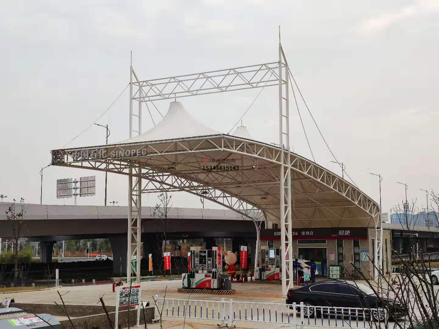 加油站膜結構頂棚與傳統(tǒng)加油站頂棚對比,有哪些優(yōu)勢?