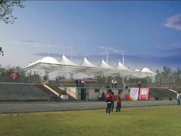 目前在我國普遍應(yīng)用膜結(jié)構(gòu)體育場看臺。膜結(jié)構(gòu)建筑能很好的覆蓋整個看臺,膜結(jié)構(gòu)的張拉樣式使得建筑的空間跨度變大,同時建筑的整體重量減輕,使施工更輕松安全。這些也是人們選用膜結(jié)構(gòu)的重要理由。膜材的表面都有涂層,可以防止灰塵雨水的侵蝕,起到保護(hù)建筑并提高使用年限的作用。
