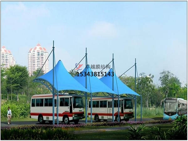 膜結(jié)構(gòu)遮陽(yáng)棚由立柱和頂棚構(gòu)成。立柱多由金屬合金制作,如鋼,鋁等,質(zhì)量輕且質(zhì)地硬,頂棚則是由膜結(jié)構(gòu)材料制成。