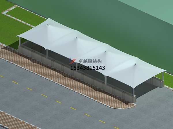 PVC膜布,將膜布從兩邊向中間做風琴式折疊成條狀,將條狀膜布或從一端向另一端或從兩端向中間做風琴式折疊成吊裝件,其寬度和長度根據(jù)吊裝需要確定,吊裝至高空作業(yè)平臺后,使用卷揚機等設備進行牽引,先延條狀展開,為防止剮蹭,應布置多道滑索,將條狀膜布擱置于高空平臺上,之后沿兩條膜布邊界掛設緊張器,間距隨膜單元大小而確定,將膜布向兩邊全面展開。