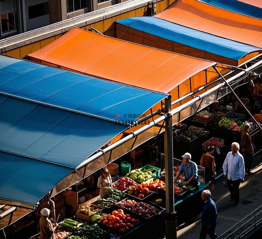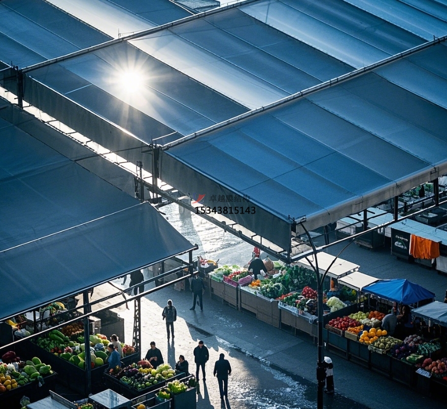 城市中心傳統(tǒng)農(nóng)貿(mào)市場改造:在城市核心區(qū)域,土地資源緊張,傳統(tǒng)農(nóng)貿(mào)市場設(shè)施陳舊、空間局促。膜結(jié)構(gòu)改造方案通過拆除原有老舊頂棚,搭建輕巧、美觀的膜結(jié)構(gòu)頂棚,能在不增加過多占地面積的情況下,優(yōu)化市場空間,提升采光、通風(fēng)效果,改善購物環(huán)境,同時(shí)保留傳統(tǒng)市場的煙火氣,讓城市記憶與現(xiàn)代功能完美融合,如北京的部分老城區(qū)農(nóng)貿(mào)市場改造項(xiàng)目,就借助膜結(jié)構(gòu)實(shí)現(xiàn)了華麗轉(zhuǎn)身,重新煥發(fā)生機(jī)。
