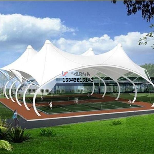 2、膜結(jié)構(gòu)是目前發(fā)展很快的一種新型空間結(jié)構(gòu),是一種效率極高的張力集成體系,可以充分發(fā)揮鋼索的強度與張拉整體結(jié)構(gòu)的空間作用。它通過鋼骨架、鋼索與膜材共同受力形式穩(wěn)定曲面來覆蓋建筑空間,具有高度的形體可塑性和結(jié)構(gòu)靈活性,即通過對膜材內(nèi)部施加一定的預(yù)張力,使其具備了抵抗外荷載能力,從而充當結(jié)構(gòu)材料的一種結(jié)構(gòu)體系。我公司先后在阿勒泰地區(qū)承接球場頂棚罩棚設(shè)計施工案例,簡介如下: