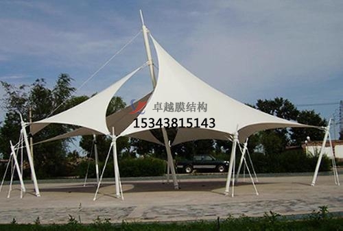 (3)膜結(jié)構(gòu)景觀(guān)表明臺(tái)具有良好的經(jīng)濟(jì)性,膜材料具有一定的透光率,可以降低白天的光照強(qiáng)度和時(shí)間,節(jié)約能源;夜間彩色燈光的透射可以形成一幅絢麗的風(fēng)景。此外,膜結(jié)構(gòu)景觀(guān)可拆卸且易于重新定位,特別是在建造短期大跨度建筑時(shí),這更經(jīng)濟(jì)。