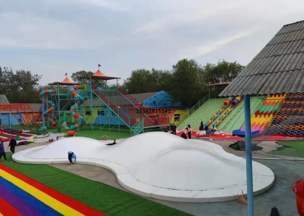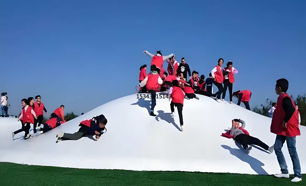 蹦蹦云的設(shè)計(jì)高度靈活,可根據(jù)場地環(huán)境定制形態(tài)與規(guī)模。無論是平坦空地還是起伏地形,均可通過設(shè)置沙坑、坡度或洞穴,塑造自然野趣的游樂場景。其純白外觀與云朵造型,既能融入景區(qū)生態(tài)景觀,也可作為商業(yè)地產(chǎn)的網(wǎng)紅打卡點(diǎn)。從親子樂園到度假村,從生態(tài)農(nóng)莊到特色小鎮(zhèn),蹦蹦云以 “可蹦、可滑、可躺” 的多維體驗(yàn),滿足全年齡段游客的互動(dòng)需求。