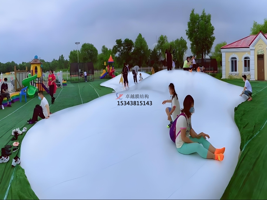 在現(xiàn)代游樂設(shè)施領(lǐng)域,蹦蹦云膜結(jié)構(gòu)憑借其獨(dú)特的造型和創(chuàng)新設(shè)計(jì),成為景區(qū)、親子樂園及商業(yè)空間的熱門選擇。這種以 “云朵” 為靈感的互動(dòng)裝置,不僅為兒童提供了安全有趣的活動(dòng)場地,更通過巧妙的結(jié)構(gòu)設(shè)計(jì)與材料科技,重新定義了戶外游樂設(shè)施的美學(xué)與功能性。