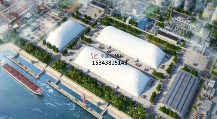 目前我國年吞吐量在1000萬噸以上的沿海港口和200萬噸以上的內(nèi)河港口占全國港口的1/3。而港口發(fā)展中所用到的煤炭、物料、煤矸石、煤堆、水泥白灰等生產(chǎn)原料造成的揚塵污染,給當(dāng)?shù)厣鷳B(tài)及居住環(huán)境造成了嚴(yán)重破壞。而全封閉氣膜倉儲結(jié)構(gòu)在港口碼頭堆場中的應(yīng)用,不但能有效幫助港口企業(yè)實現(xiàn)環(huán)保與經(jīng)濟并存的雙贏局面,還將促成我國港口形成綠色生態(tài)新發(fā)展格局。