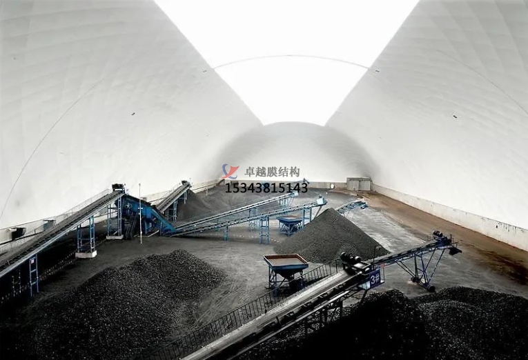 氣膜倉儲建造成本比傳統(tǒng)建筑約節(jié)省近50%的建造成本費用,配套“智能抑塵系統(tǒng)+高效粉塵捕捉劑”的使用可以實現(xiàn)全部粉塵無需向外排放,達到在棚內(nèi)即可治理的零排放標(biāo)準(zhǔn)。