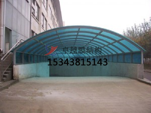 許昌車庫(kù)口膜結(jié)構(gòu)案例是指位于河南省許昌市的一座車庫(kù)入口,采用了膜結(jié)構(gòu)技術(shù)建造的建筑。該建筑為單層鋼結(jié)構(gòu),由兩個(gè)弧形鋼桁架和中間的膜材料組成。