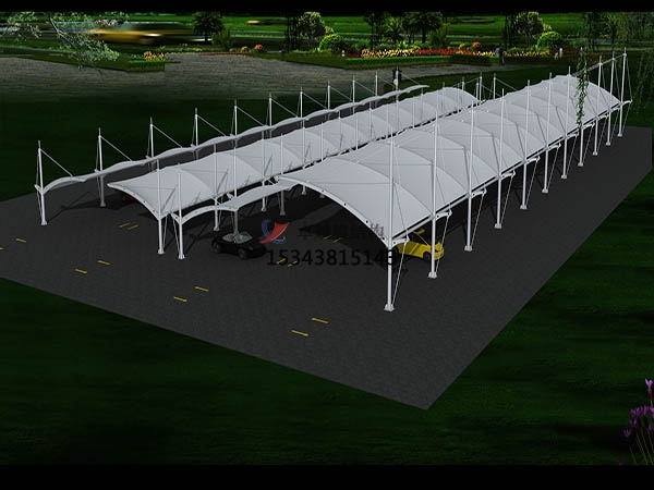 膜結構雨棚是一種全新的建筑結構形式,它集建筑學、結構力學、精細化工與材料科學、計算機技術等為一體,具有很高技術含量。其曲面可以隨著建筑師的設計需要任意變化,結合整體環(huán)境,建造出標志性的形象工程。
