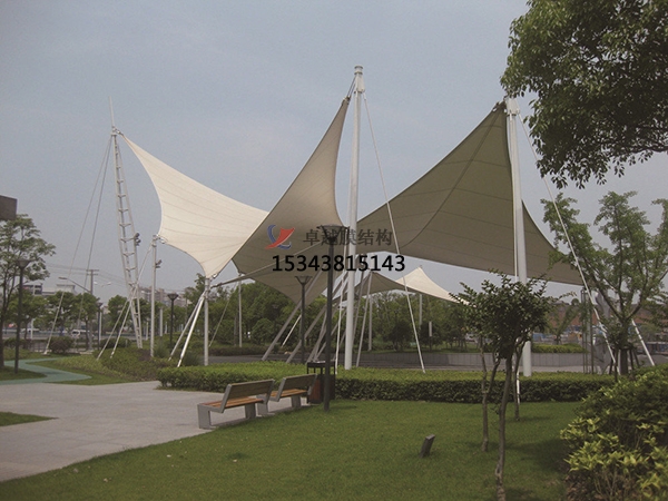 膜結(jié)構(gòu)自身重量很輕,僅為鋼結(jié)構(gòu)的1/5,混凝土結(jié)構(gòu)的1/40,因此索膜結(jié)構(gòu)對地震力有良好的適應性,而對風的作用較為敏感。此外雪荷載和活荷載的作用也在設(shè)計范圍之內(nèi)。公園建筑選擇景觀小品膜結(jié)構(gòu),讓一層不變的綠色環(huán)境,搭建出一個又一個深入人心的膜結(jié)構(gòu)建筑,景觀膜結(jié)構(gòu)造型美觀,怎能不奪人眼球,吸引大眾注意力。