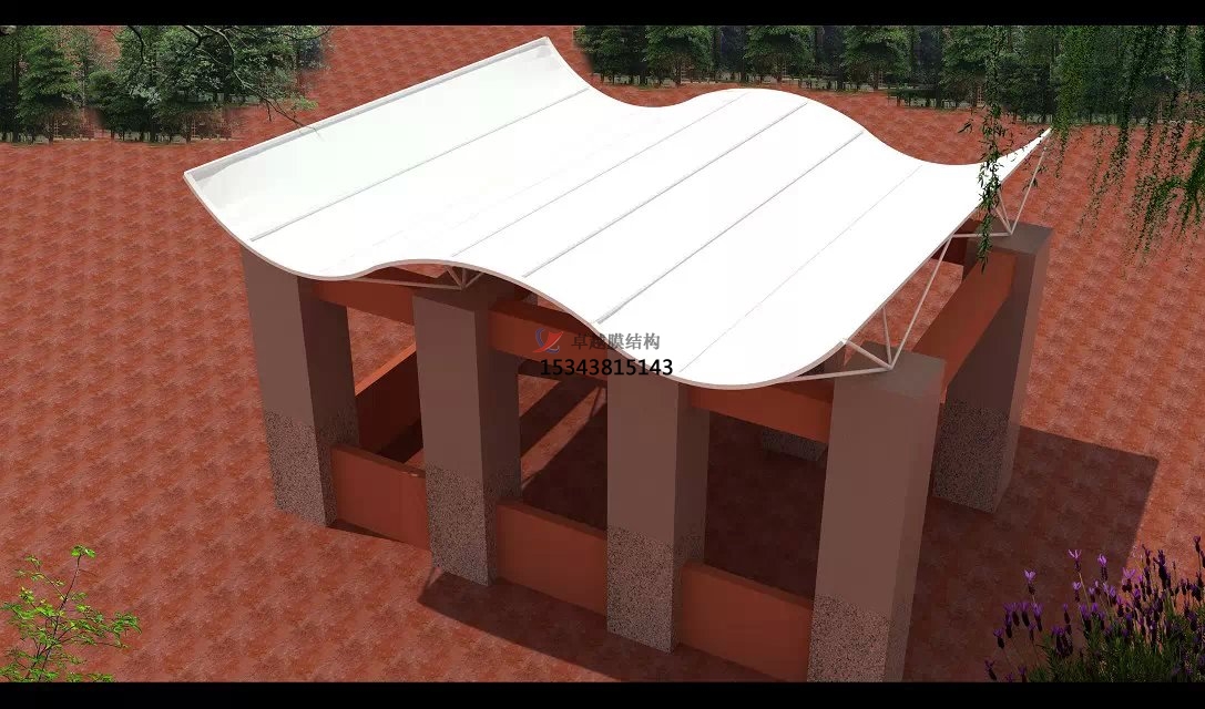 采用膜結構屋頂?shù)暮锰幨蔷哂辛己玫沫h(huán)保性、透光性、自清潔性,膜材表面采用PVDF(聚偏二氟乙烯)涂層、或二氧化鈦涂層,具有較好的隔熱效果,透光率好等特性。