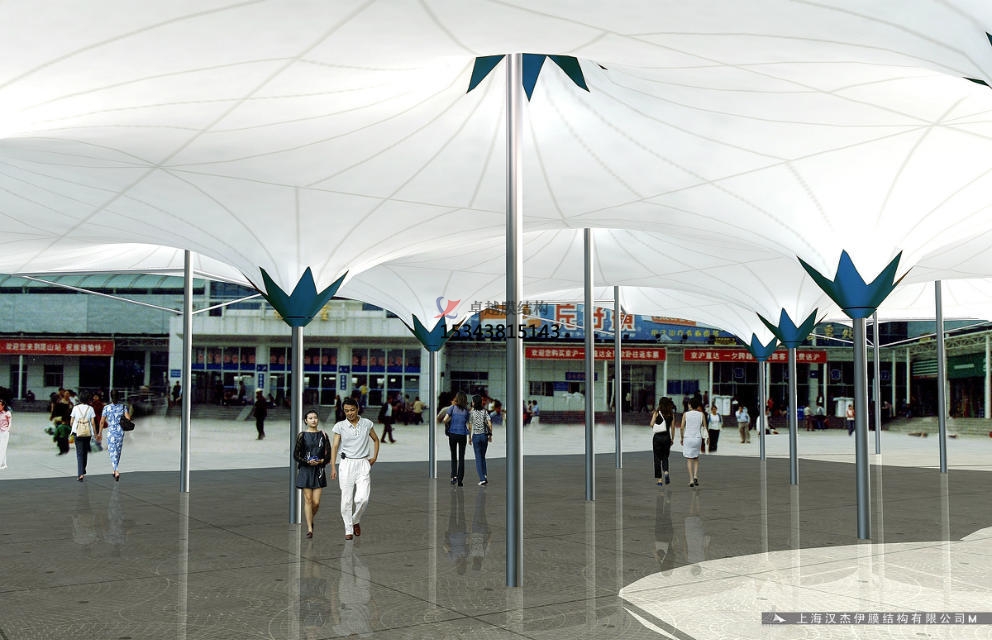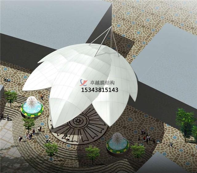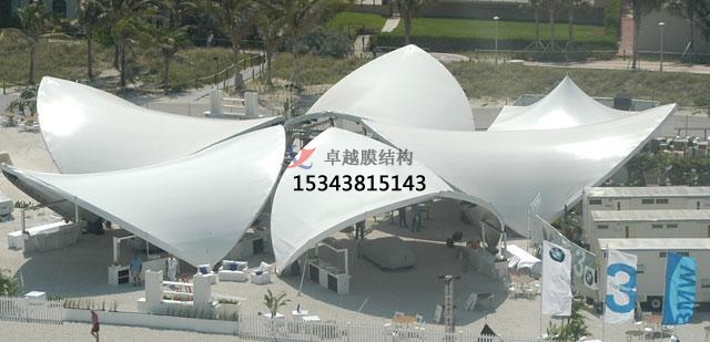 膜結構景觀的透光性及對光色的選擇可以通過涂層的顏色或是面層顏色來調(diào)節(jié)。通過膜材和透光保溫材料的適當組合,可以使含保溫層的多層膜具有透光性。即使光譜透射只有幾個百分點,膜屋面對于人眼來說依然是發(fā)亮和透光的,具有輕型屋面的觀感,常用建筑膜材的外觀為PVDF資料涂層,存在物理服從動搖與良好的自潔效果,膜外觀粉塵一般環(huán)境下雨水可自行沖洗干凈,同時包管建筑的使用壽命。