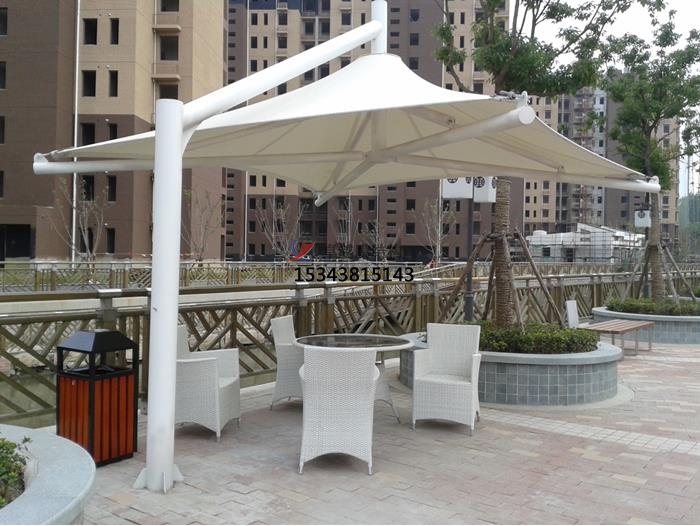 目前,膜結(jié)構(gòu)景觀工程已經(jīng)逐漸應(yīng)用于體育場、網(wǎng)球場、展覽中心、停車棚、收費(fèi)站、污水處理等很多設(shè)施中,膜結(jié)構(gòu)景觀的優(yōu)點(diǎn)很多,一是建筑造型優(yōu)美,它打破了純直線建筑風(fēng)格的模式,以其獨(dú)有的優(yōu)美曲線造型,簡潔、明快、剛與柔、力與美的完美組合,呈現(xiàn)給人耳目一新的感覺。二是覆蓋大跨度空間,膜結(jié)構(gòu)景觀由于自重輕,加上鋼索、鋼結(jié)構(gòu)高強(qiáng)度材料的應(yīng)用,通過合理的設(shè)計(jì)受力體系,簡潔合理,故使膜結(jié)構(gòu)景觀適合跨越較大跨度空間,從而形成開闊的無柱大跨度結(jié)構(gòu)體系工程。三是防火性和抗震性,膜結(jié)構(gòu)景觀建筑所采用的膜材具有助燃性和耐高溫性,能很好的滿足防火要求。由于自重輕,柔性強(qiáng),故抗震性能好。四是施工工期短,由于骨架的鋼結(jié)構(gòu)和膜材裁剪可以在工廠加工制作,現(xiàn)場只需要組裝,施工簡便快捷,施工周期較傳統(tǒng)建筑短。