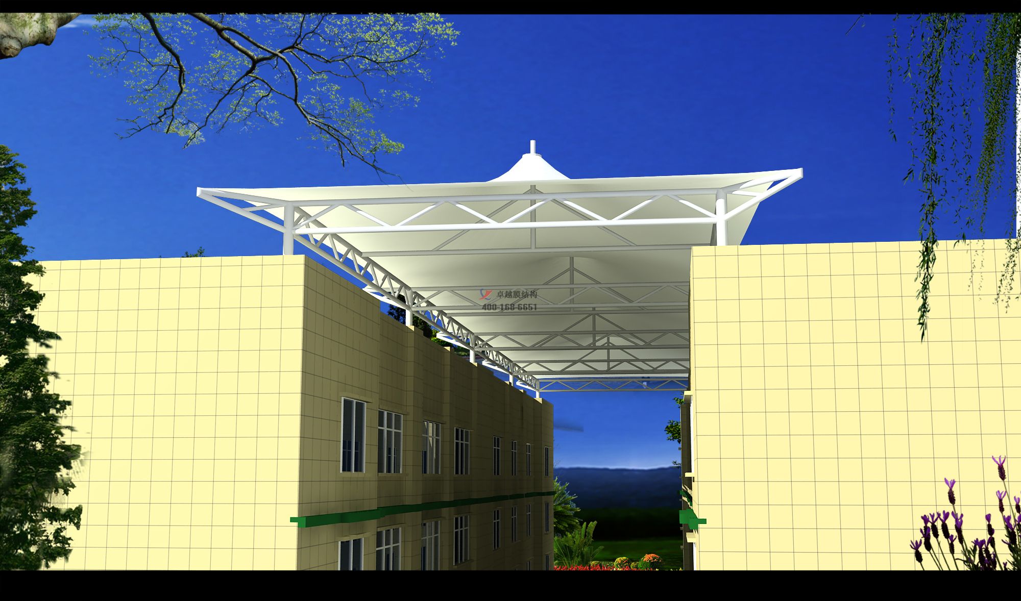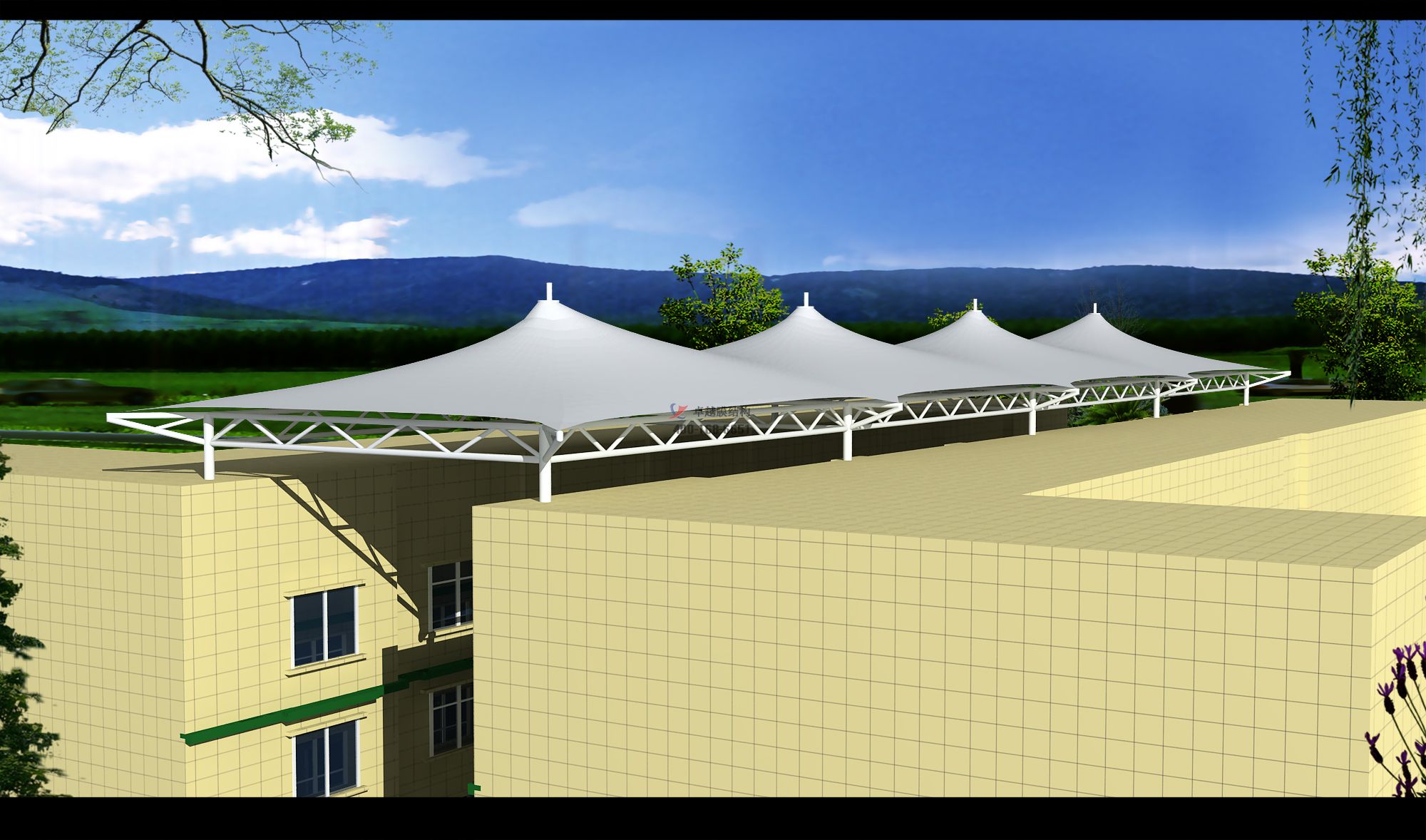 項(xiàng)目結(jié)構(gòu)形式:骨架式膜結(jié)構(gòu)商場頂棚