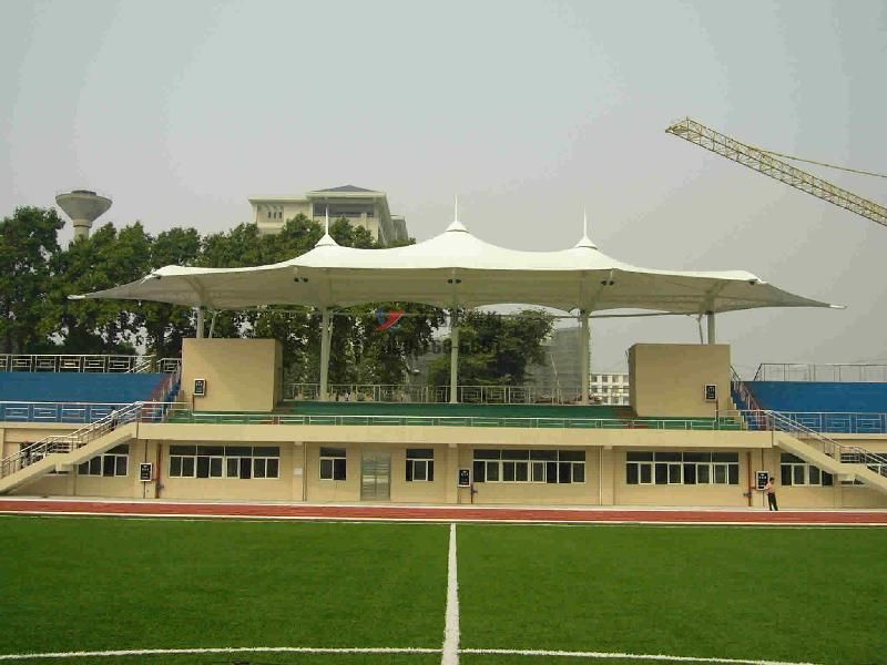 張拉膜看臺主要用于各類地方體育場主席臺雨棚,各類學(xué)校體育場看臺雨棚遮蓋,我公司是國內(nèi)較早從事大懸挑張拉膜結(jié)構(gòu)看臺設(shè)計施工的專業(yè)廠家,下面介紹一下我們在濟南市周邊縣市完工的一些張拉膜看臺設(shè)計施工案例,我公司先后在濟南周邊承接了山東大學(xué)張拉膜看臺雨棚、德州科技職業(yè)學(xué)院張拉膜看臺罩棚、齊魯工業(yè)大學(xué)張拉膜看臺遮陽棚等設(shè)計施工項目,簡介如下: