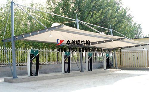 膜結構充電站樁車棚設計、施工案例,我們在濮陽承接了濮陽長途站、濮陽市公交公司、濮陽市中海油氣新能源有限公司