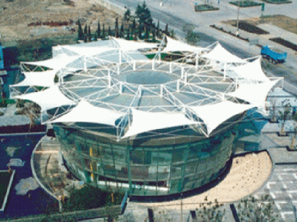 《建筑設(shè)計防火規(guī)范》及《高層民用建筑防火設(shè)計規(guī)范》中對建筑物各構(gòu)件的燃燒性能和耐火極限都有明確的規(guī)定。目前膜結(jié)構(gòu)建筑中使用的膜材通常有兩類,一類是以玻璃纖維織物為基材,涂覆聚四氟乙烯(PTFE)等樹脂材料,燃燒性能可達到A級;另一類是以尼龍織物為基材,涂覆PVC及其他樹脂材料,燃燒等級可以達到B1級。 如果采用前者應(yīng)該可以滿足要求,但如果采用后者則整體膜結(jié)構(gòu)建筑的耐火極限如何確定,有待進一步分析;