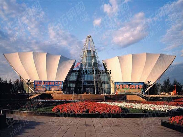 結(jié)合整體環(huán)境,建造出標(biāo)志性的形象工程,并且實(shí)用性強(qiáng)、應(yīng)用領(lǐng)域廣泛。既可應(yīng)用了大型公共設(shè)施,如體育場館的屋頂系統(tǒng)、機(jī)場大廳、展覽中心、購物中心、停車場、站臺(tái)設(shè)施等。又可應(yīng)用于休閑設(shè)施、工業(yè)設(shè)施、入口廊道以及標(biāo)志性或景觀性的建筑、小品等。