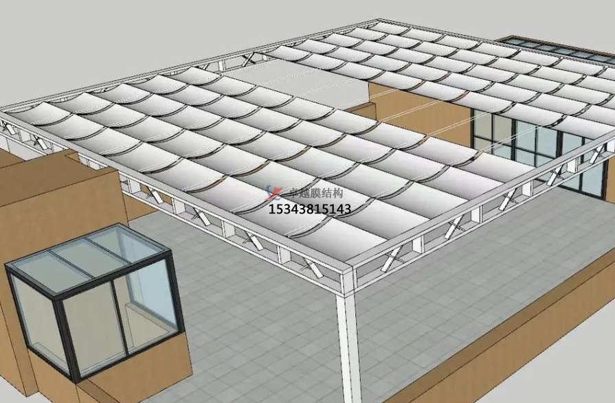 膜結(jié)構(gòu)是由多種高強薄膜材料組成的,有PTFE膜材、ETFE膜材、PVC膜材等,涂PTFE具有較好的隔熱效果,可以反射70%的太陽熱能,不受紫外線影響,隔熱效果甚好,造浪池遮陽棚設(shè)計施工為你在夏日炎炎中撐起一片涼爽地方;在自潔性也有著其傳統(tǒng)建筑所沒有的優(yōu)勢,而在使用壽命上,更是達到15年以上,讓你無需擔憂。