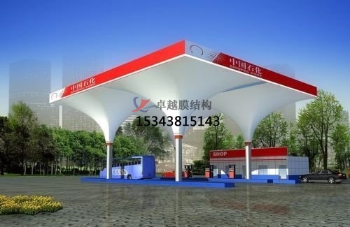 就拿加油站罩棚來說吧,傳統(tǒng)的罩棚一般是用無數(shù)根(只是想說數(shù)量大,別較真兒)鋼管組成的網(wǎng)架支撐起來的,沉重且易腐蝕,易褪色。膜結(jié)構(gòu)加油站則大膽地走起了“減肥”路線,省去了這些網(wǎng)架,采用型鋼結(jié)構(gòu),不僅輕便了,還延長(zhǎng)了使用壽命,而且檐面采用的膜結(jié)構(gòu)復(fù)合材料,可保持10年不褪色。