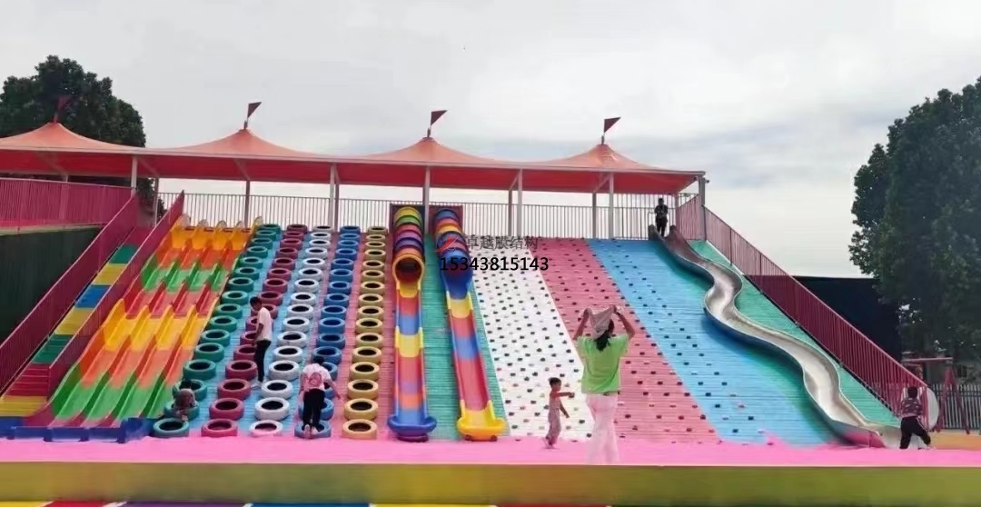 重慶游樂設(shè)備彩色膜結(jié)構(gòu)可以采用多種不同的形式,如充氣膜結(jié)構(gòu)、張拉膜結(jié)構(gòu)、折疊膜結(jié)構(gòu)等。其中,充氣膜結(jié)構(gòu)是將空氣或氣體充入膜材料中,使其膨脹起來形成結(jié)構(gòu);張拉膜結(jié)構(gòu)則是通過張拉膜材料使其成型;折疊膜結(jié)構(gòu)則是將膜材料折疊成各種不同的形狀。
